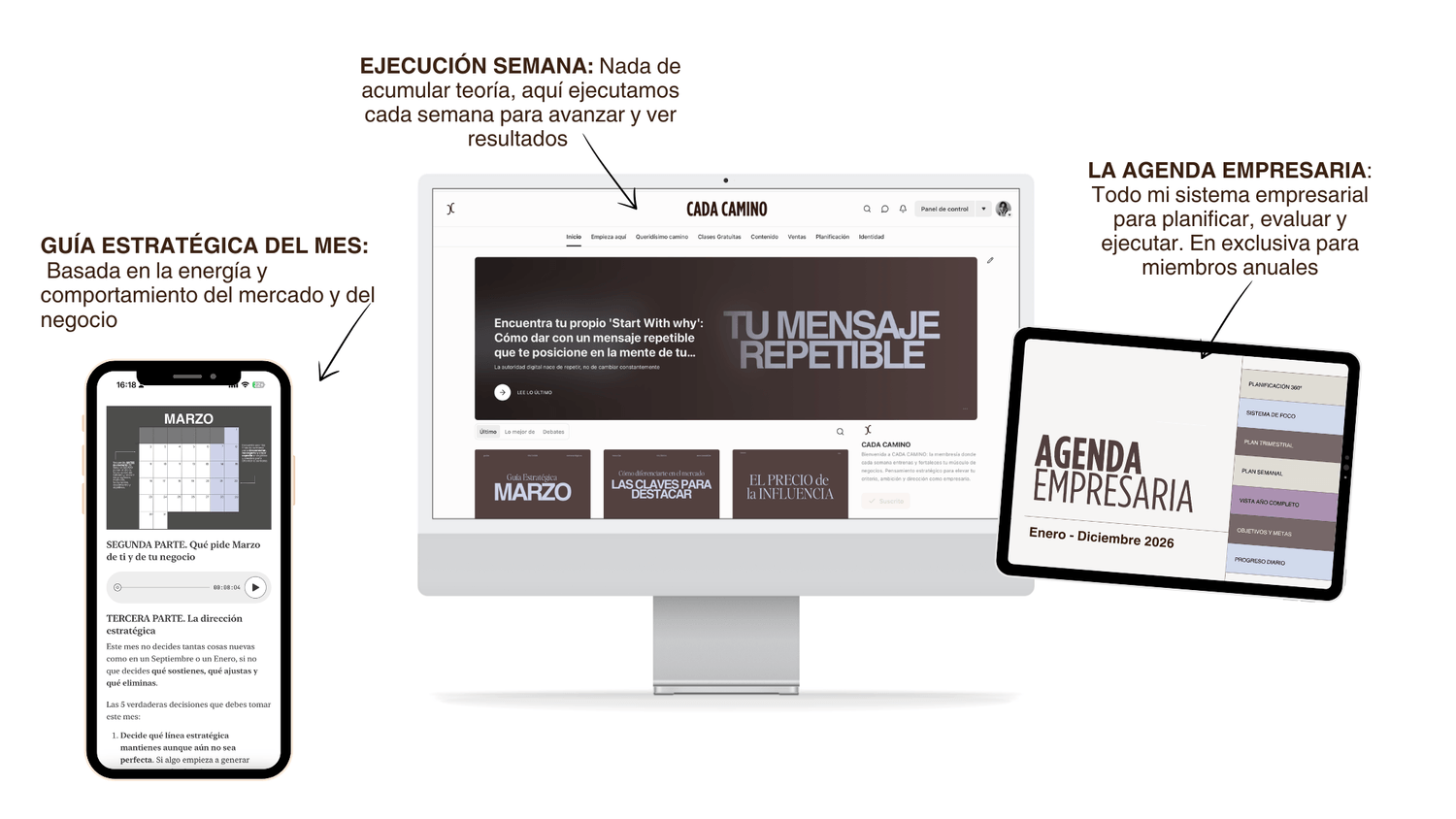 El mayor problema de las emprendedoras no es la falta de estrategia, si no la improvisación constante. Tener ideas, información y talento no significa saber cómo dirigir y hacer funcionar un negocio en el día a día. La membresía CADA CAMINO es el lugar donde aprendes a hacerlo con claridad, altos estándares y criterio empresarial